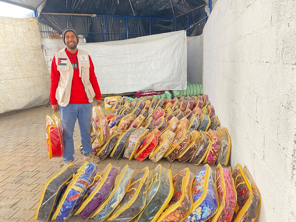 75 blankets prepared before loading them to be distributed to needy displaced families